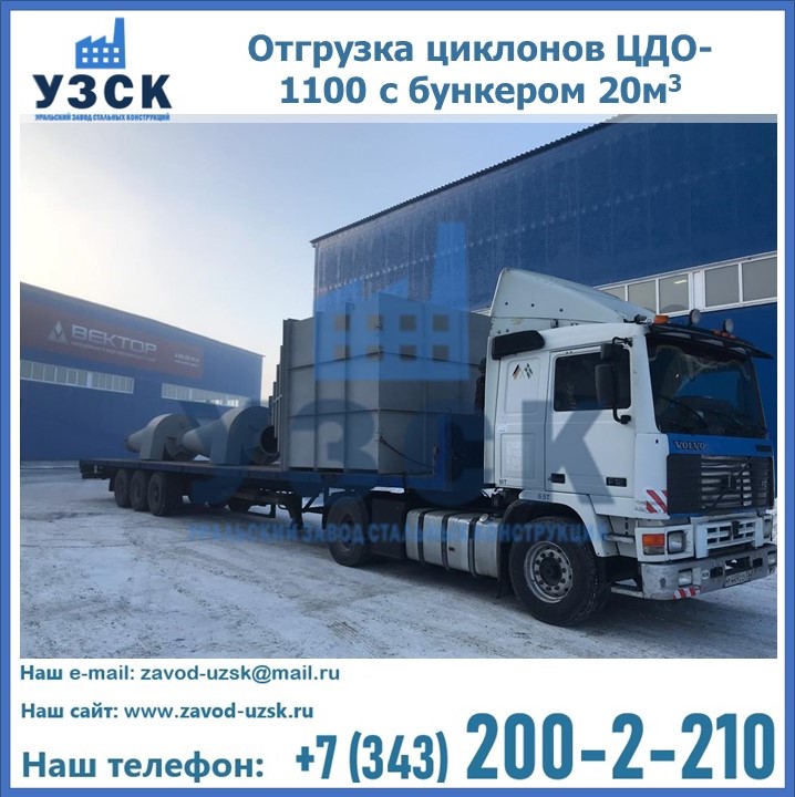 Циклоны ЦДО-1100 с бункером на 20 кубов были отгружены в декабре 2018 года в г. Новосибирск Сочи.