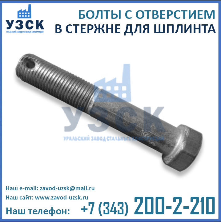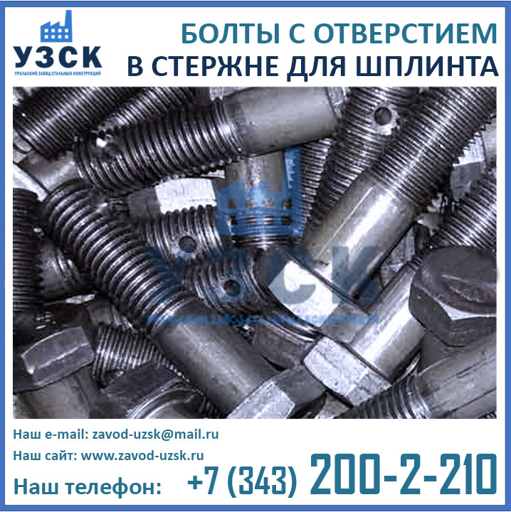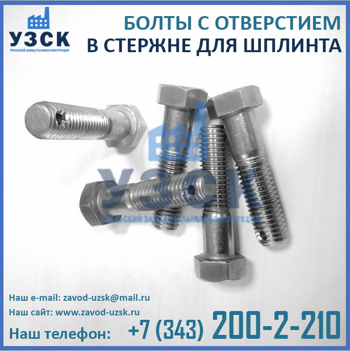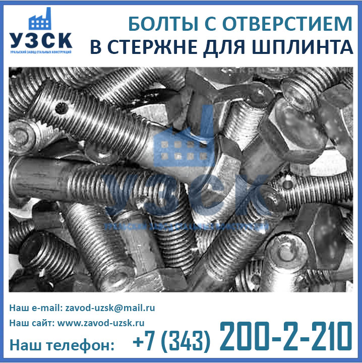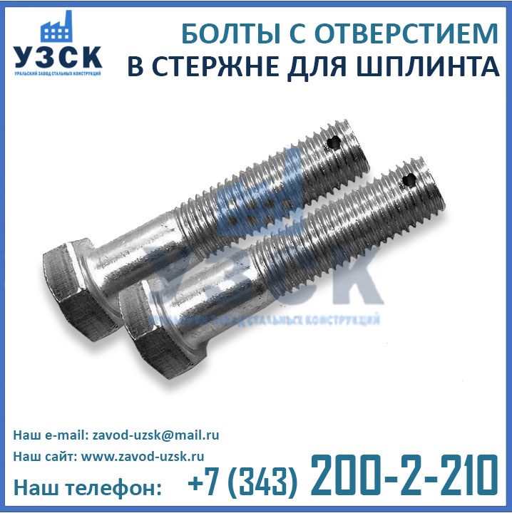 Уральский Завод Стальных Конструкций предлагает изготовление болтов с отверстием из различных материалов, в зависимости от условий их эксплуатации.