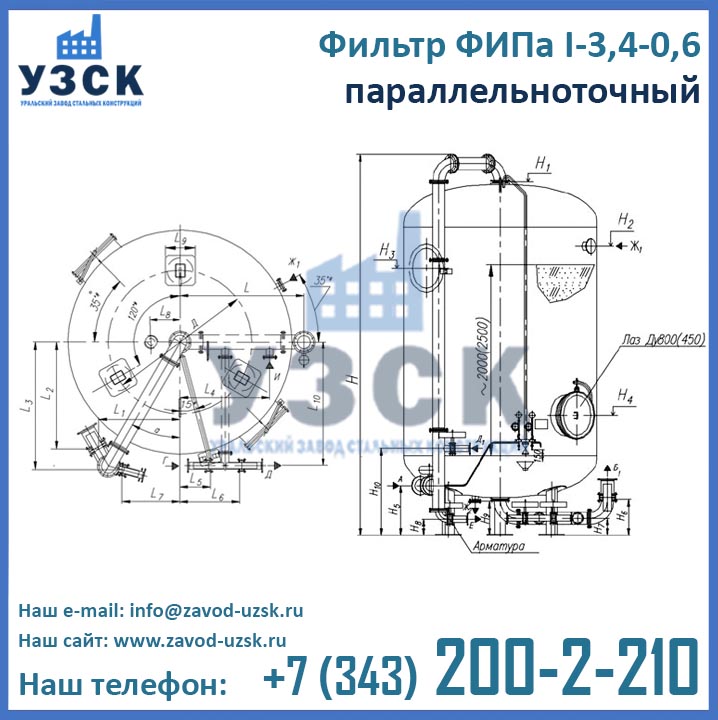 Производитель фильтров ФИПа параллельно-точных завод УЗСК предлагает два варианта комплектации ФИПаI 3,4-0,6 в Сочи:
