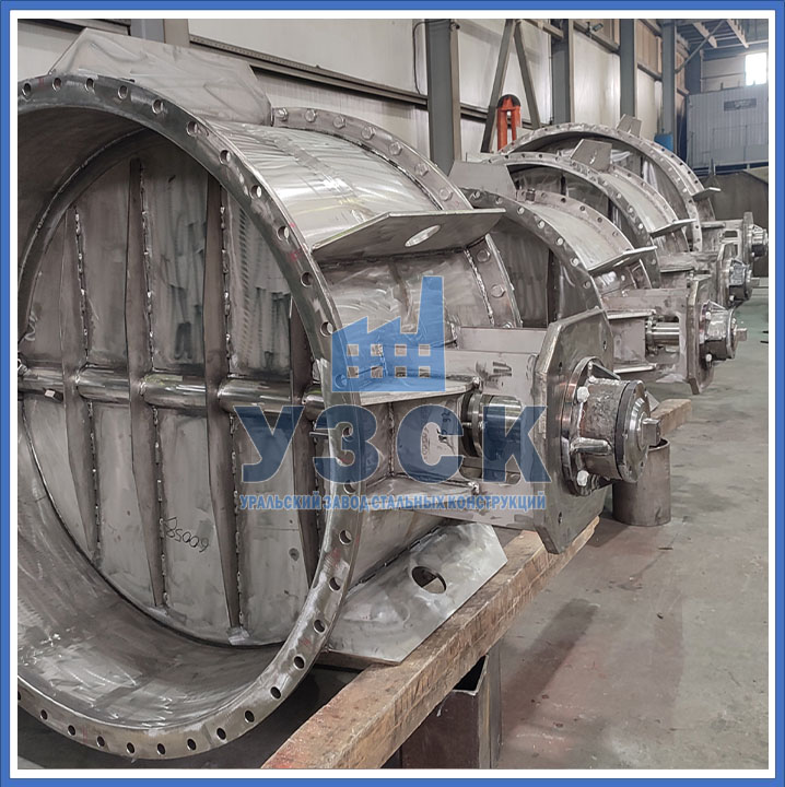 Клапаны ПГВУ, клапаны газоходов фотогалерея Клапаны ПГВУ 12Х18Н10Т Клапаны ПГВУ круглого сечения Клапаны ПГВУ с фланцевым соединением Круглые клапаны ПГВУ Фланцевые клапаны ПГВУ Клапаны ПГВУ из нержавеющей стали